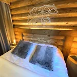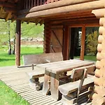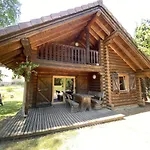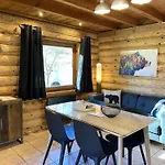 De 2-slaapkamer L'OURSBLANC Chalet en rondins Villa ligt op 3 km van Les Feignes en beschikt over meubels op een terras voor een aangenaam verblijf.